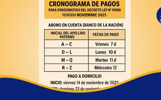 CRONOGRAMA DE PAGOS: PARA PENSIONISTAS DEL DECRETO LEY N° 19990 (ONP): PERIODO NOVIEMBRE 2025