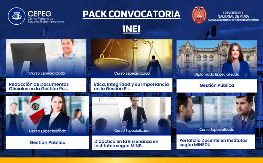 Aunque la convocatoria no exige cursos o diplomados específicos, se pueden considerar como relevantes o complementarios para el perfil solicitado los siguientes cursos ofrecidos por CEPEG: